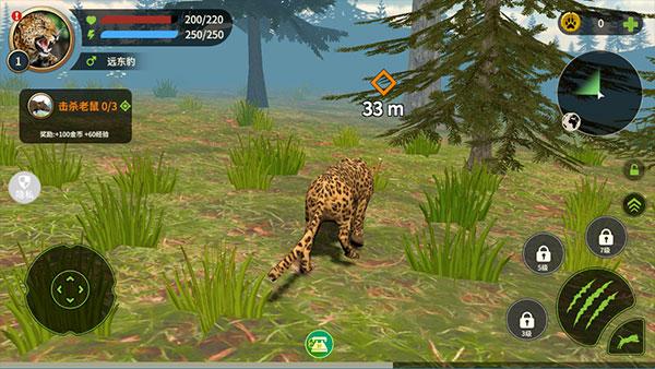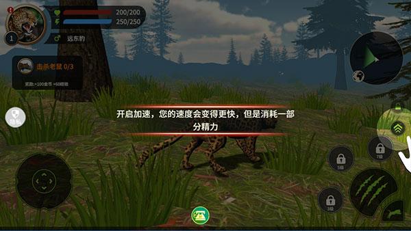 模拟猎豹中文版手机版是一款可以模拟猎豹的3D沙盒生存手游。在游戏中,玩家将成为一只猎豹,为了生存你需要利用自己锋利的爪牙追捕猎物,身临其境与之搏斗,厮杀,将其征服,不断提升自己的战斗技巧和生存能力!除了努力适应残酷的丛林生活,你还需要关注健康,饥饿,能量等数值,完成任务获得经验,并对攻击力、速度、血量等属性进行升级,以猎豹的视角去追溯更多的奇妙领域,不断探索更广阔的动物世界!
