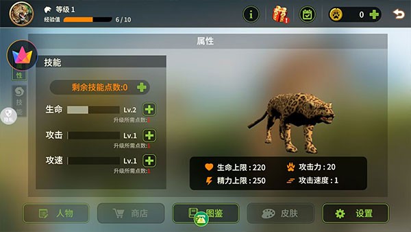 8、点击头像,可以升级属性,让猎豹更强!