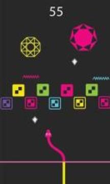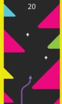 2、当你击中相同颜色的障碍物时,蛇的颜色变化非常快,你需要像蛇一样思考并且快速向上移动。