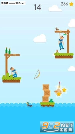 游戏过关的条件就是在规定的时间内,用规定的射击次数,在不伤害到死刑犯的前提下射箭割断悬挂他们的绳子将他们解救出来,游戏操作简单,只需要玩家控制力度和角度射出箭矢,但是关卡只会越来越难,后面的关卡只有经过不断地尝试才能找到最佳的通关方法,喜欢挑战的小伙伴们赶紧下载尝试吧!