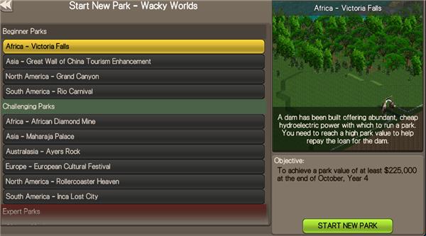4、如果你想自己建造公园点击首页中的Start New Park,选择一个公园场景。