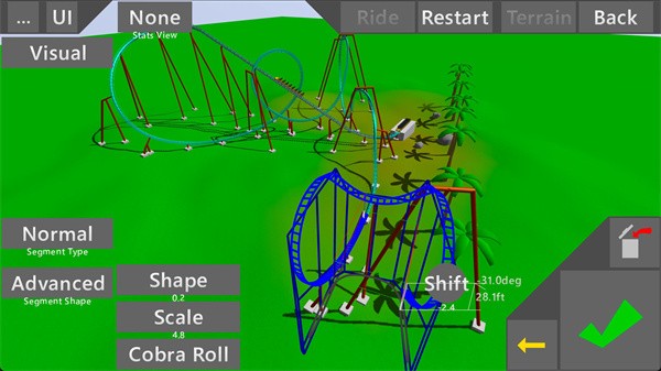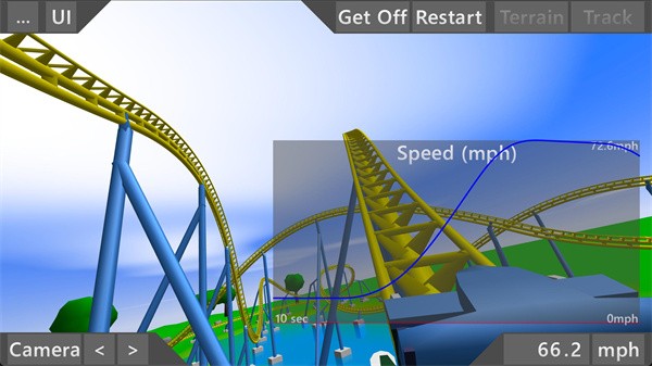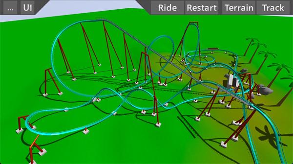 6、当我们建造好过山车后,点击"Ride"按钮,我们可以体验第一人称的刺激感;