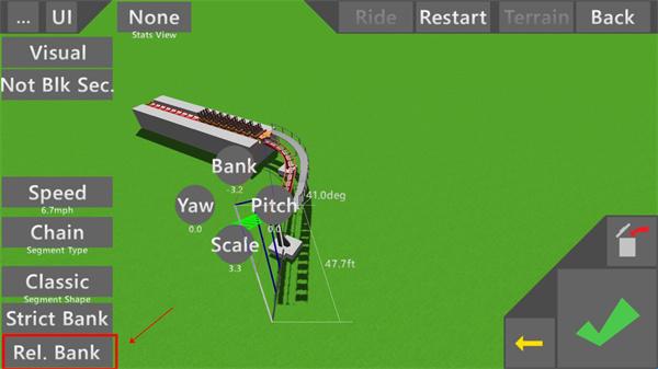 4、点击"Rel.Bank"按钮,我们可以以地图或以前一节轨道为基准让轨道进行倾斜;