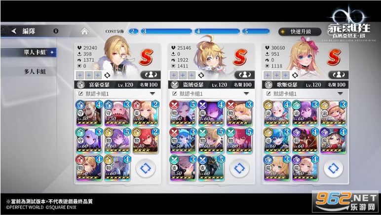 在《乖离性百万亚瑟王:环》中,玩家可依据自身喜好,调整合适的亚瑟阵容,针对其属性及能力作搭配。