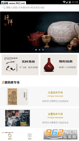 璟祥拍卖app隶属于璟祥拍卖公司,包含直播功能,用户可以用手机在线上参加拍卖会,分别包括实时拍卖和限时拍卖,有看中的书画,瓷器等艺术品可以实时出价参加拍卖。