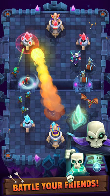 与魔法师,一些水晶塔和一些战斗部队的主要塔是唯一的防御你必须与你的敌人发生冲突,并坚决控制“皇家竞技场”。部署你的战斗部队并施展你的法术来击败敌方战斗力!