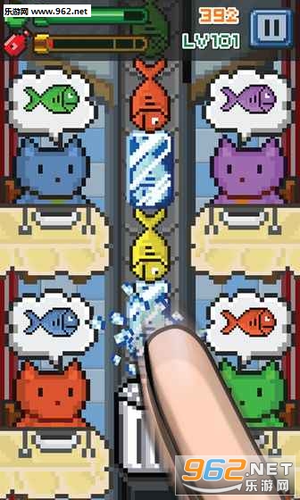 只要将对应的颜色的鱼送至想吃它们的猫嘴边即可。点击小猫就能把鱼喂给猫咪吃,游戏虽然如此简单,但如果玩到后面出现的死鱼会带来一些挑战,毕竟所有的猫儿都喜欢吃新鲜的食物!