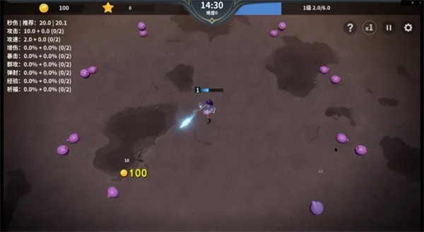 2、游戏开始后,英雄会自动攻击,击败敌人后,英雄会获得经验;