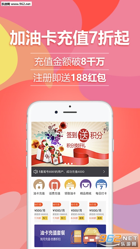 线上低价充值,低至6.8折!支持支付宝,等多种支付,是一款全民必备的打折加油APP
