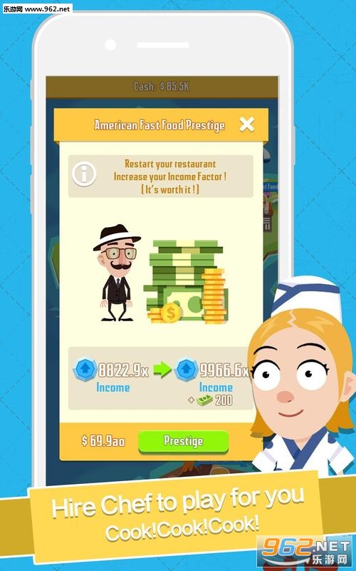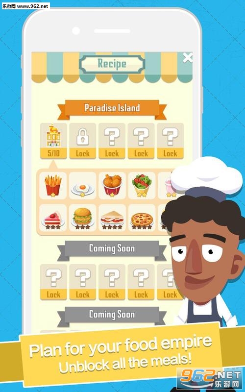 3、学习新的食谱,为您的餐厅添加新的烹饪项目,或是聘请厨师为你制作美食。