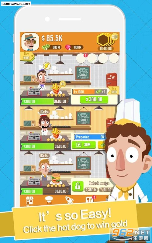管理经营烘培坊,雇佣各类厨师,帮助你制作可口的蛋糕、巧克力棒和小松饼。设计绝佳食谱,制作新式小松饼、饼干、薄煎饼和馅饼,让烘培坊发展壮大。