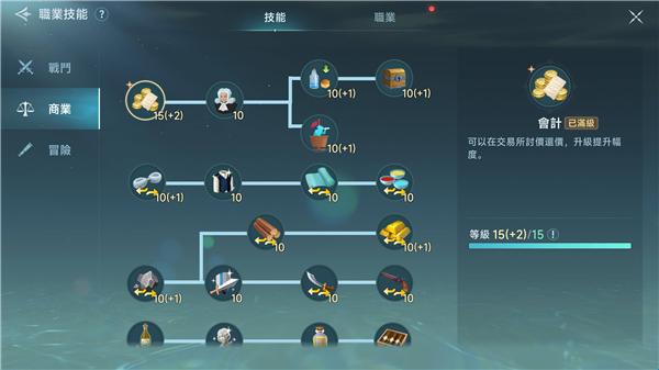 1、交易技能:习得更多交易技能,可增加在交易所的购买量及生产物的种类。交易技能等级提升,可以增加砍价抬价的成功率和失败后再次议价的可能性。