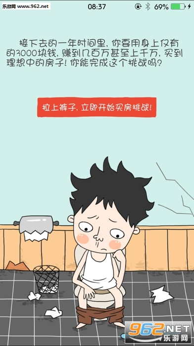 游戏讲述了一位在城市打拼的屌丝奋斗买房的故事。在城市四年合租、加班、月光的生活让这位屌丝十分疲惫,买房的梦想遥不可及,回老家还是继续坚持?终于有一天,彻夜游戏之后,经过上厕所时深深的思考,这位屌丝觉醒了!他决定用一年时间做最后一次努力,实现买房的挑战!