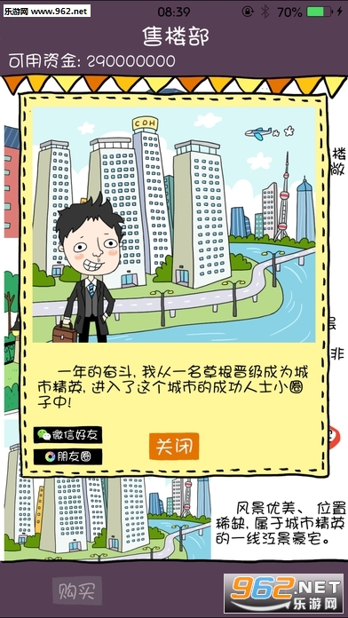 一款非常有趣的文字模拟经营类游戏,游戏中你将扮演一位屌丝(虽然你现实中很可能也是一位屌丝),为了实现自己的买房梦想而努力奋斗,游戏玩法较简单,但是各种各样的突发情况却非常考验你的策略和操作,可怜的小屌丝最终能实现自己的买房梦吗?快来帮帮他吧!