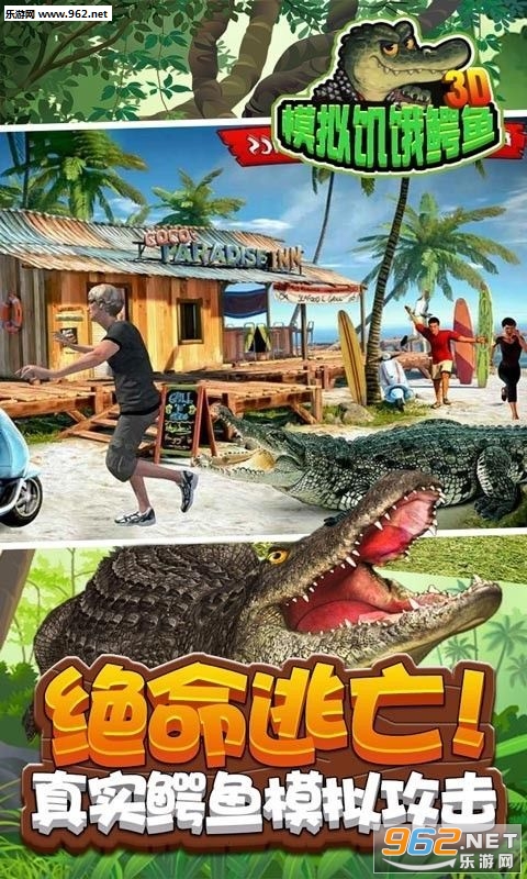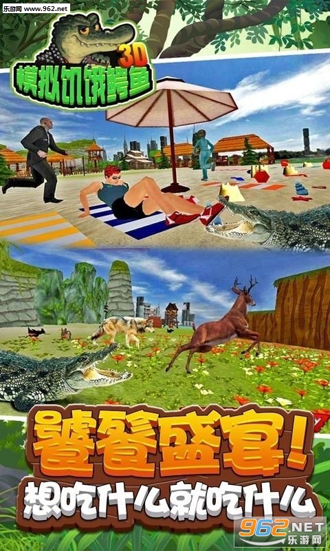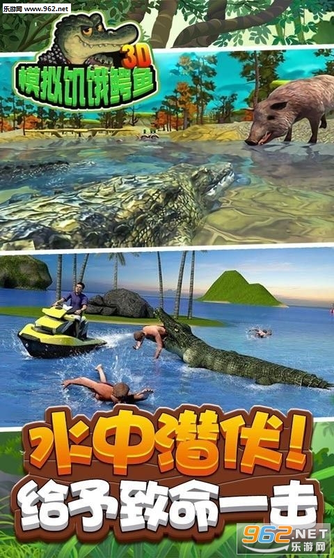 3D模拟饥饿鳄鱼游戏手机版是一款超逼真的鳄鱼模拟类手机游戏,玩家将变成一只凶残无比的鳄鱼,在河岸边伺机捕食,河岸边的人类、鱼类和野兽都是你的攻击对象,你是水中的王者没有人敢招惹你,选择你的攻击目标快速的发动攻势,面前的美味一定不能错过,随着饭量的增大,你需要捕获更多的猎物。