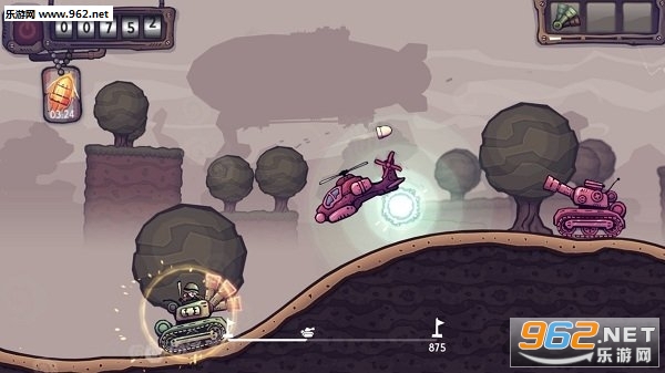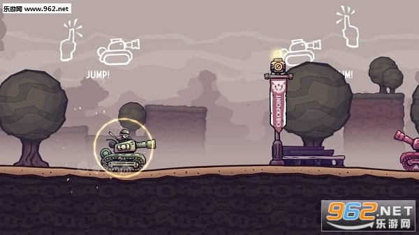 1、无尽的冒险和挑战,你需要控制你的坦克发射炮弹来消灭敌人的坦克和飞机,而跳跃可以躲避敌人埋藏的地雷。