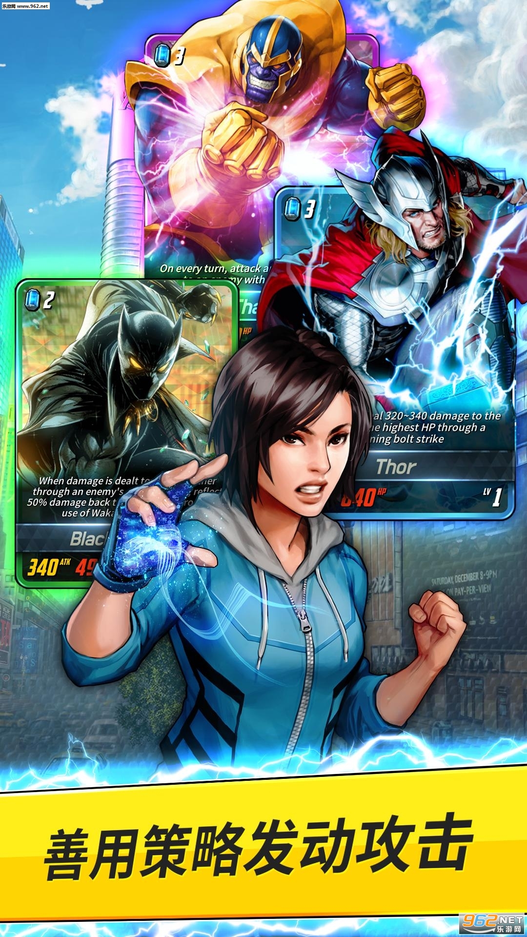 2、打造您的卡牌组合,创造您的最强战队。超级英雄和超级反派供您自由组合,包括复仇者联盟、捍卫者联盟、神盾特工局及其他;