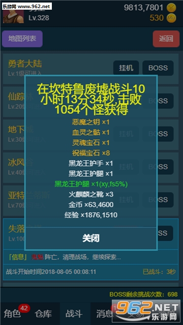 离线挂机:点击挂机选项就可释放双手,系统后台为您实现离线打怪。