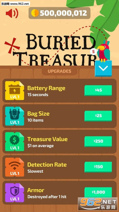 《埋藏的财宝安卓版》是一款用来打发时间非常不错的游戏,游戏的玩法非常的简单,玩家只需要通过简单的操作即可完成宝藏的探索和挖掘,同时还可以升级你的探索和挖掘的工具,感兴趣的亲赶紧下载吧。