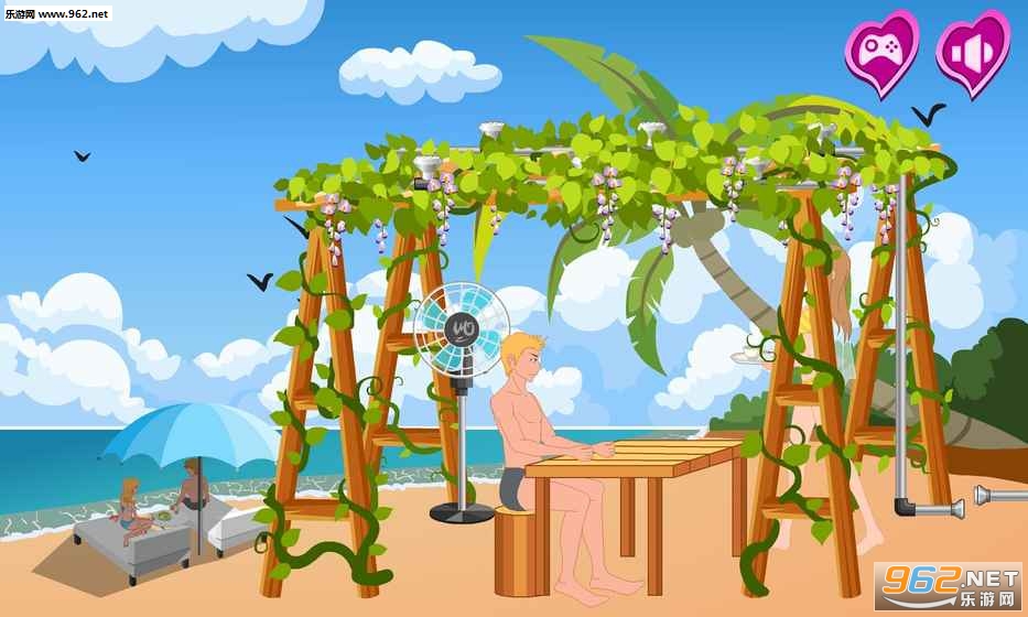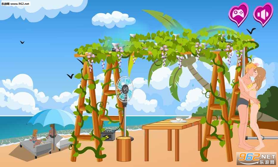 你来海滩度假,有一个服务员为你服务。 服务员很漂亮,你想和她说话,和她一起玩。 最后,你能和她成为一个情人并与她亲吻吗?