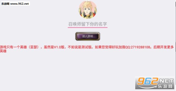 这是一款王者荣耀的同人游戏,游戏主要以文字描述的方式作为整体的玩法,游戏没有了华丽的画面,和紧张刺激的操作,本作将告诉你什么才叫真正的最强王者!用打字的文字的方式控制你的英雄释放技能进行战斗,指点江山啊,云玩家?键盘侠?管他呢,好玩就行。