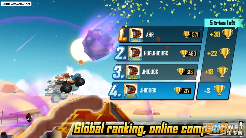 戴上你的头盔,加快速度,摆脱重力,打破物理定律!您的速度越高,收集的硬币越多,奖励就越丰富。使用硬币升级您的车辆,为更加艰难和更具挑战性的赛道做好准备!