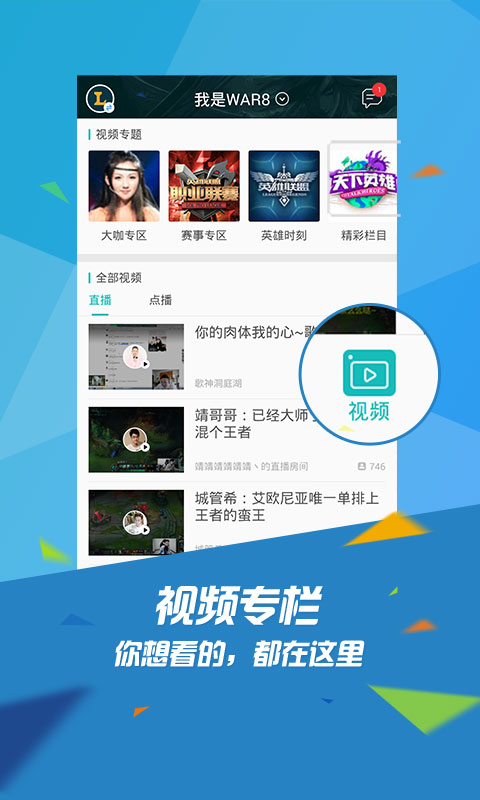 【聚合多平台游戏直播】聚合虎牙、斗鱼、企鹅电竞三家平台游戏直播,这里有你想看的所有热门主播/游戏!同时与WeGame PC端直播订阅互通,PC端看不够,移动端接着看~
