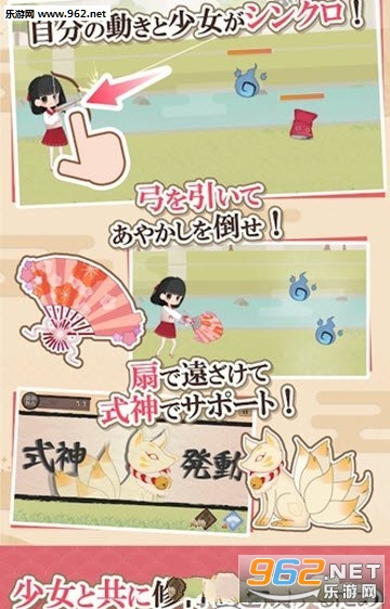 弓箭巫女传说是一款以巫女和弓箭为题材的日式和风卡通风格养成扮演游戏,在游戏中你要帮助一个可爱的女巫修行,通过弓箭消灭怪物来提升自己的实力,收服各种各样的式神来增强自己的攻击,让攻击可以附带各种效果,游戏的操控也非常简单,按住屏幕调整视角、力度,松开即可射击。