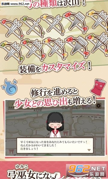 伴随着修行的进行,你可以获得不同的弓箭和式神哦!!