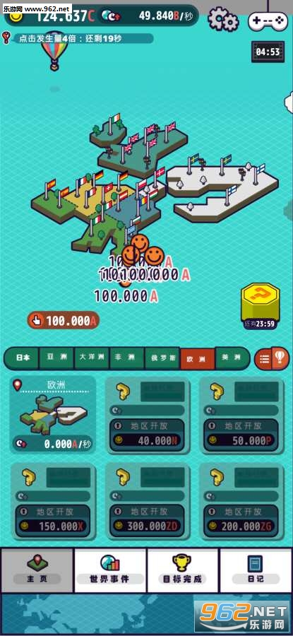 通过不断点击获取笑脸,解锁全球一个又一个的地区。
