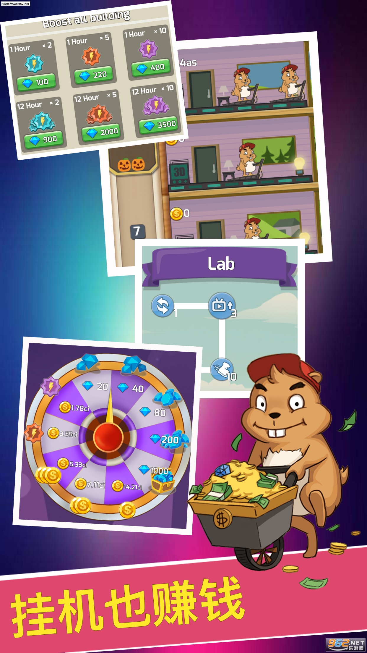 游戏采用竖版的画风设计,模拟经营的玩法,玩家玩累了还能挂机,游戏的剧情设计也十分的搞笑,有趣,赶紧来下载,帮助我们的小竹鼠壮大自己的电力公司吧!