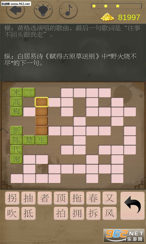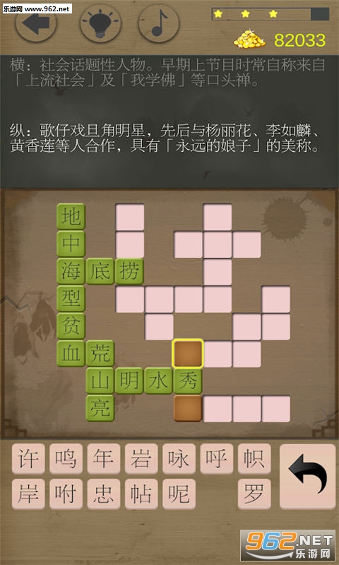 最原汁原味的欢乐填字游戏,方便流畅的操作,一流画质,丰富有趣的题目类型。