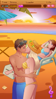 点击屏幕让这对情侣亲吻在一起,同时注意后面女孩子的视线,当她睁眼时停止亲吻即可,非常休闲的玩法。