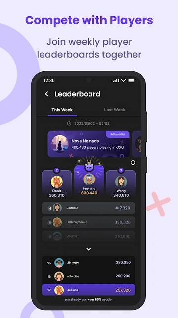 OXO会根据你玩过的游戏类型创建排行榜,让你在享受游戏的同时与其他2265玩家竞争。