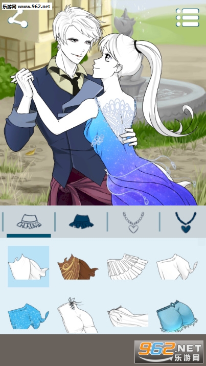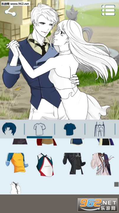 超精美的一款二次元换装游戏,游戏的操作方式非常的简单,玩家只需要通过选择衣橱中不同的部位的服饰,为游戏中两个跳舞的人换上各种华丽的衣物即可,休闲中却不缺少趣味性,喜欢此类型游戏的亲们赶紧下载吧。