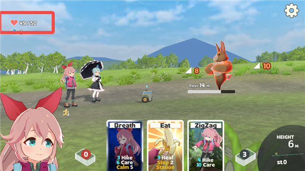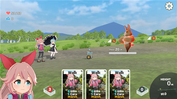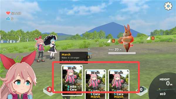 1、在游戏中玩家则需要通过卡牌和道具(游戏中叫齿轮)的组合帮助两位可爱的少女爬上日本各种名山的山顶。