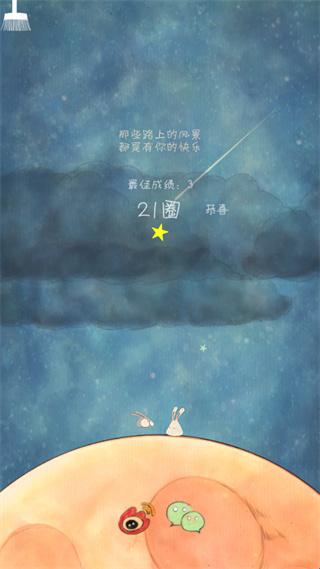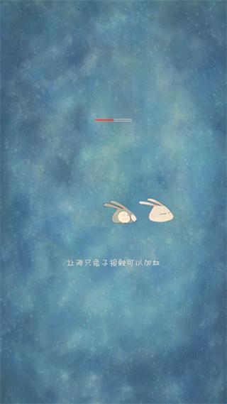 3、两只兔子并不是步调一致,彼此相伴,只能靠每次短暂的相碰增加体力,才能追的更远。但是每盘游戏结束后两只兔子就可以在一起蹦来蹦去啦,真是一个美好结局。