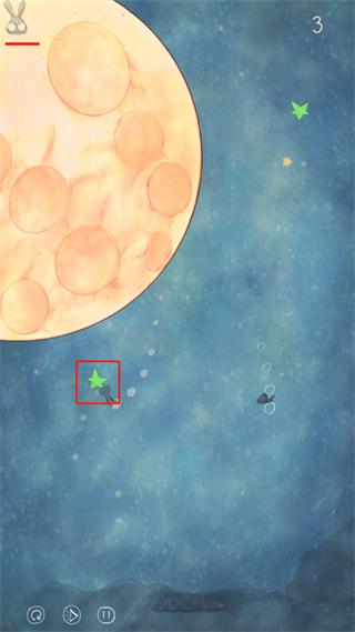 3、玩家控制一只兔子和另一只兔子绕月球追逐转圈,两只兔子必须不断相互触碰以维持体力;