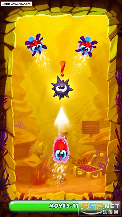 小心干扰:一只鬼鬼祟祟的海胆不时出没。不要让果冻碰到它,否则会越变越多!