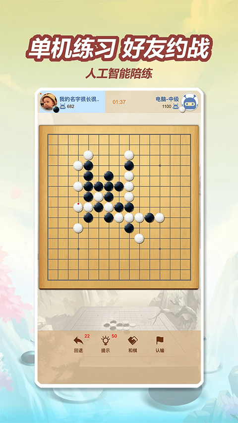 4、多种难度选择的人工智能单机对弈功能,爱好者的私人陪练。