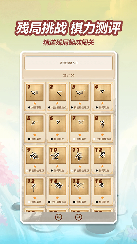 精心设计的残局解谜玩法,让玩家既能获得大量游戏道具奖励,又在娱乐中提高棋艺水平。