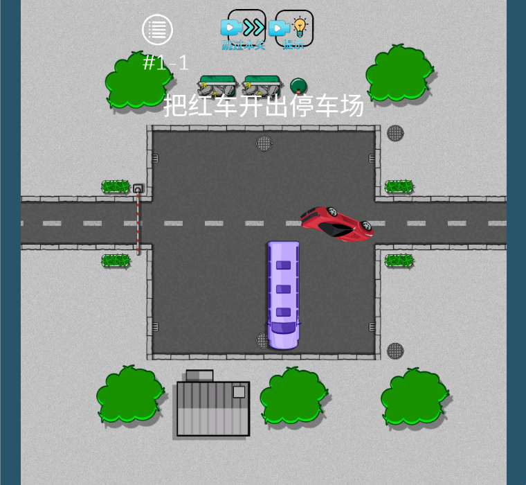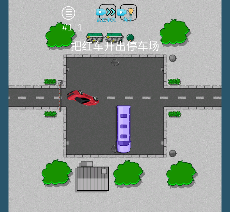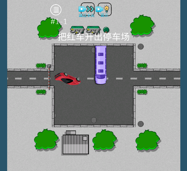 3、现在我们移动红车出停车场即可
