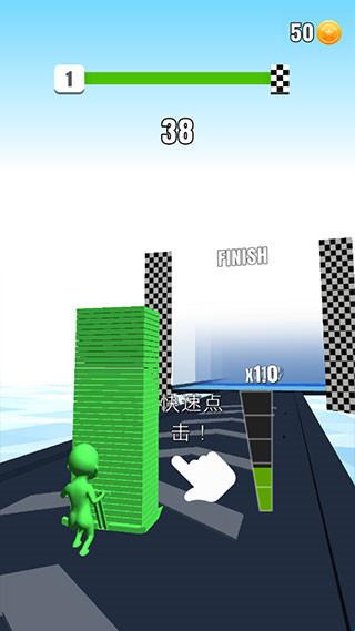 搬砖我最强是一款十分魔性的休闲闯关手游,游戏画风清新简约,玩法轻松休闲,并且附带一丝丝魔性,非常适合大家无聊时娱乐解压,能够带给你不一样的欢乐。游戏中的砖块有很多,你们需要根据颜色来选择叠加砖块,这些砖块的颜色必须要与你所控制的角色的颜色相同,中间换颜色的时候记得看自己对应的颜色,颜色不对应是会消掉已有砖块的,到最后终点的时候你需要有足够的砖才能过关,否则会重来。搬砖的过程中,一定要小心的应对,并用最为流畅的方式去完成挑战,全面开启的模式,独特有趣元素和内容加入其中,用你最为熟悉的动作和方式,完成搬砖任务的同时,不断的向前奔跑,快速抵达到终点。
