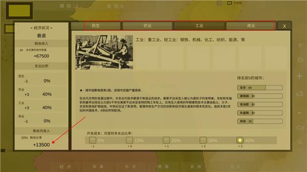 3、点击文明首都即可对整个文明进行调整、注意,只有在有多余的收入时才可以开发其他项目。