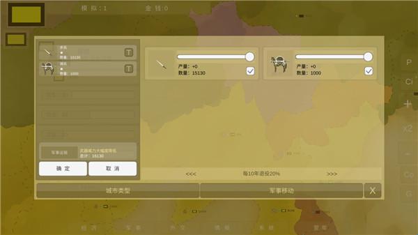 4、点击其他城市可以设定它的类型和调动军队。