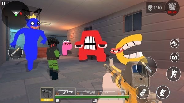 字母射击生存联机版游戏是第一人称射击游戏。采用了非常经典的字母形象设计角色,我们玩家将与其进行射击对决,在这个游戏世界里,他们作为恐怖分子,而你作为反恐守卫者,战斗一触即发,超多武器任你选择体验,快来试试吧!