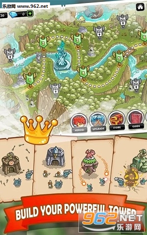 不同于普通的塔防,帝国勇士给你一个更有趣和令人兴奋的游戏风格。你不仅会建塔,也召唤英雄和英雄的命令在史诗般的战斗。