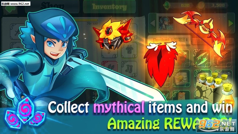 至于其他的RPG游戏,你需要强大的物品和武器清除战斗,以吨真棒设备和强大的武器将帮助你的英雄成为最强的战士。不要忘记对它们进行升级,他们将带来新的力量的英雄。勇士还可以使用特殊武器像剑,弓,锤,刀,工作人员......消灭怪物在每次战斗更快。