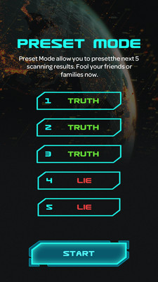 秘密按音量键来控制结果。(音量增加键可让结果显示真话,音量减小键可以让结果显示谎言)。