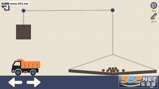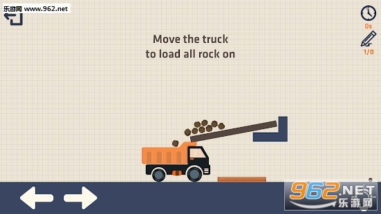 使用在屏幕底部的箭头按键,移动卡车到达在所期望的位置,绘制形状将石头运送到车厢。你能够通过多少关卡?